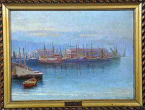 Beraglia Arturo ( XX secolo) Barche olio su tela cm 33x45 firmato in basso a destra: Arturo Beraglia