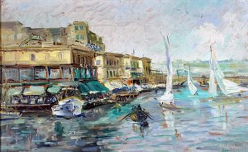 Martucci Antonio (XX secolo ) Marina olio su tavola cm 35x55 firmato e datato in basso a destra: A.Martucci