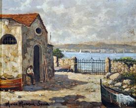 Maresca Serra Mario (Napoli 1912 - 1990 ) Casa di pescatore olio su tavola cm 25x30 firmato in basso a sinistra: Mario Maresca Serra