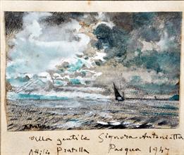 Pratella Attilio (Lugo di Romagna, RA 1856 - Napoli 1949) Effetto cielo tempera su carta cm 9,5x13,7 firmato in basso a sinistra: A.Pratella