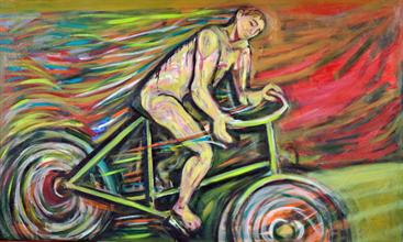 Verio Francesco ( Napoli 1959) In bicicletta olio su tela cm 60x100 firmato e datato in basso a sinitra: Verio 99