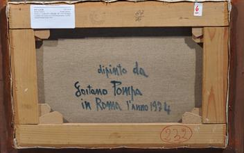 Pompa Gaetano (Forenza, Lucania 1933- Orbetello, GR, 1998) Paesaggio e animale olio su tela, cm 35x50 firmato datato e iscritto in basso a sinsitra: Gaetano Pompa Roma 1964