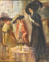 Bocchetti Gaetano (Napoli 1888 - 1990) Donne al bar olio su tavola, cm 50x40 firmato in basso a sinistra: G. Bocchetti