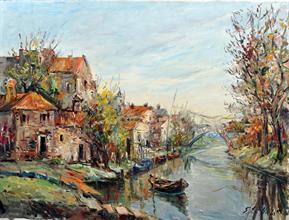Crisconio Luigi (Napoli 1893 - Portici, NA 1946) Porto di Granatello olio su cartone, cm 15x21 firmato e datato in basso a destra: 1945 L. Crisconio Bibliografia: Luigi Crisconio, a cura di RosarioCaputo, Galleria d'Arte Vittoria Colonna, 2004, pag. 31