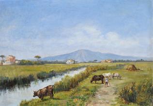 Leone Romolo (Napoli 1890 - 1964) Paesaggio olio su cartone, cm 35x50 firmato in basso a destra: Romolo Leone