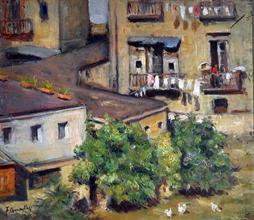 Anastasi Francesco (Palermo 1887 - Napoli 1964) Tetti olio su tavola, cm 22,5x26,5 firmato in basso a sinistra: F. Anastasi