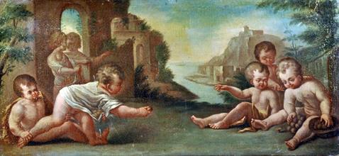 Scuola del XVIII secolo olio su tela, cm 66x141