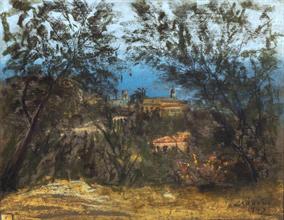 Carrino () Paesaggio tecnica mista su cartone, cm 40x50 firmato e datato in basso a destra: Carrino 1942