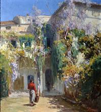 Ferrigno Antonio (Maiori, SA 1863 - Salerno 1940) Vecchio casolare olio su tavola, cm 48,5x43,5 firmato in basso a destra: Ferrigno