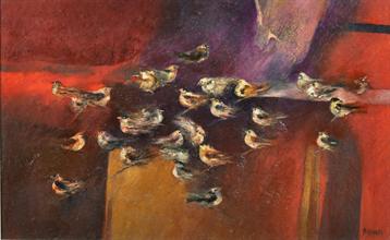 Panzavolta Carlo (Cesena 1948) Passeri a Monte Fiore olio su tela, cm 50x80 firmato in basso a destra: Panzavolta a tergo cartiglio e timbro XI Concorso di Pittura Estemporanea Belfiore Malatesta