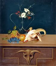 • Piezzo Umberto (Portici, NA 1957) Natura morta olio su tela, cm 45x35 firmato e datato in basso a sinistra: Piezzo 75 a tergo firmato e datato: Piezzo 75