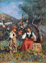 • Giardiello Giuseppe (Napoli 1871 - 1916) Contadini a Capri olio su tela, cm 49,5x68 firmato in basso a sinistra: G. Giardiello