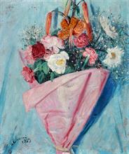 • Colucci Vincenzo ( Ischia, NA 1898 - 1970) Vaso con fiori olio su tela cm 60x50 firmato e datato in basso a sinistra: V.Colucci 1939