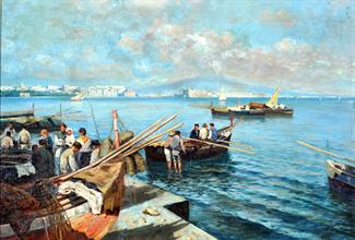 Costa Raffaele (XX secolo) Marina di Napoli olio su tela, cm 67x97 firmato in basso a destra: R. Costa