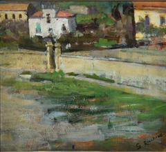 Ricchizzi Gaetano (Napoli 1879 - 1950) Paesaggio olio su cartone, cm 28x30 firmato in basso a sinistra: G. Ricchizzi Provenienza: Coll. eredi L.Manzi, Napoli