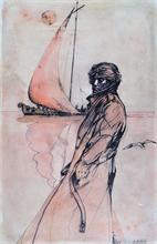 • Avitabile Alfredo (Napoli 1937 - 2006) Solitudine di Ulisse tecnica mista su carta, cm 60x40 firmato in basso a destra: A. Avitabile Provenienza: Galleria Apogeo, Napoli