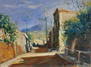 De Lauzieres Armando (Portici 1943) Via di Ercolano olio su tavola cm 30x40 firmato in basso a destra: A. De Lauzieres