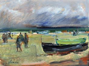 Placido Errico (Napoli 1909 - 1983) Barche a secco olio su cartone cm 29.5x39.5 firmato in basso a sinistra: Placido
