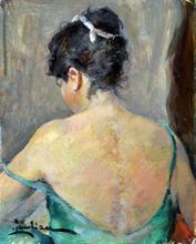 Lambiase Walter (Cava dei Tirreni, SA 1925 - Napoli 2004) La schiena olio su tavola, cm 31x25 firmato in basso a sinistra:W. Lambiase a tergo firmato: W. Lambiase