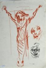 Notte Emilio (Ceglie Messapica, BR 1891 - Napoli 1982) Crocifissione tecnica mista su carta, cm 46x32 firmata in basso a destra: E. Notte