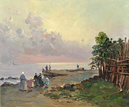 Galante Francesco (Margherita di Savoia, FG 1884 - Napoli 1972) A Mergellina olio su tela, cm 40x50 firmato in basso a destra: F. Galante