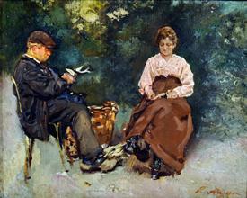 • Ragione Raffaele (Napoli 1851 - 1925) Al Parc Monceau olio su tela rip. su cartone, cm 28x35 firmato in basso a destra: R. Ragione