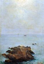 Pratella Attilio (Lugo di Romagna, RA 1856 - Napoli 1949) Scogliera olio su tela, cm 48x34 firmato in basso a destra: A. Pratella a tergo timbro Blanchet, Paris