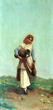 Autore non identificato del XIX secolo Acquaiola olio su tavola, cm 41x20 iscritto in basso a destra: V. Montefusco