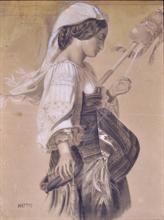 Mattej Pasquale (Formia 1813 - Napoli 1879) Popolana tecnica mista su carta, cm 49,5x37,5 firmato in basso a sinistra: Mattej