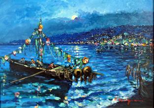 Toma Radames (Casarano, LE 1924 - 2002) Nel porto olio su tavola, cm 25x35 firmato in basso a destra: R. Toma a tergo cartiglio Galleria Mediterranea, Napoli
