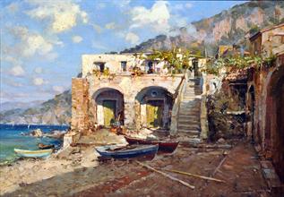 White Valentino (Positano, SA 1909 - 1986) Marina olio su cartone, cm 40x60 firmato in basso a sinistra: V. White