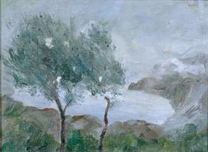 • Cortiello Mario (Napoli 1907 - S.Sebastiano al Vesuvio, NA 1981) Paesaggio di Capri olio su tavola, cm 14,5x20,5 a tergo cartiglio dell'artista