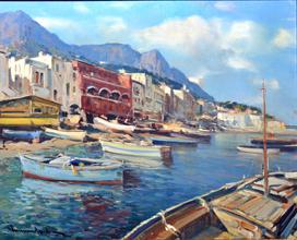 Aprile Vincenzo (Napoli 1952) Marina grande olio su tavola, cm 40x50 firmato in basso a sinistra: Vincenzo Aprile