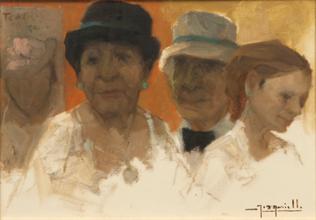 D'Aniello Michele (1915-1988) Figure olio su tavola, cm 35,5x50 firmato in basso a destra: M. D'Aniello