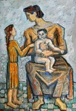 • Notte Emilio (Ceglie Messapica, BR 1891 - Napoli 1982) Maternità olio su tavola, cm 100x70 firmato in basso a destra: E. Notte