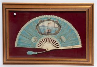 Ventaglio in avorio su fondo verde raffigurante innamorati