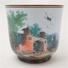 Vaso in ceramica con paesaggio dipinto a tutto tondo, diametro cm 14 ; h 14