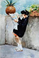 Irolli Vincenzo (Napoli 1860 - 1949) Il Corriere dei piccoli acquerello su carta, cm 60x42 firmato in basso a sinistra: V. Irolli