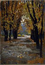 • Belloni Giorgio (Codogno, LO 1861– Mezzegra, CO 1944) Autunno olio su tavola, cm 18,9x13,6 firmato in basso al centro: G. Belloni