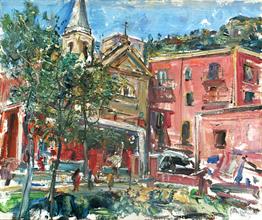 • Casciaro Guido (Napoli 1900 -1963) Via Luca Giordano olio su tela, cm 89x89 firmato e datato in basso a sinistra: Guido Casciaro a XII Provenienza: Eredi dell’artista,Napoli; coll. privata, Napoli Esposizioni: Mostra retrospettiva di Guido Casciaro, Napoli 2006 Bibliografia: Guido Casciaro a cura di R.Caputo, Edizioni Vincent, tav. 25 pag. 56 a colori