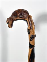 Bastone animato con ghiera alta incisa in diagonale e impugnatura in legno forgiata a testa di lupo con occhi di vetro. Dotato di due sistemi: randello in metallo retrattile a doppia spirale e lunga lama inserita nel fusto Bibliografia - DIKE Catherine, Cane curiosa from gun to gadget, Geneva 1983, p.280
