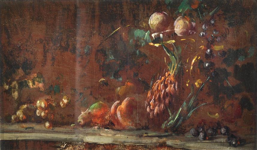 • Uva Giuseppe (Napoli 1847 - 1937) Natura morta olio su tavola, cm 14x24,5 firmato in basso a sinistra: G. Uva