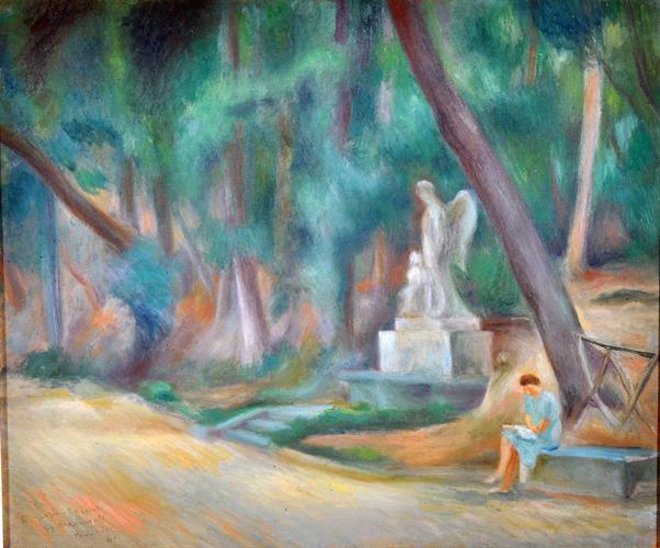 Ricci Paolo (Barletta, BA 1908 - Napoli 1986) In villa olio su tavola, cm 40x50 dedicato, firmato e datato in basso a sinistra: a Grazia e Pio Loreto affettuosamente Paolo Ricci 42
