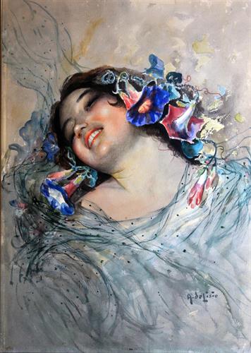 La crocerossina olio su tela, cm 32,5x 41 firmato in basso a sinistra: L. Postiglione a tergo iscritto: Bozzetto originale di Luca Postiglione per il suo quadro " La crocerossina della prima guerra mondiale" premiato con la medaglia d'oro.
