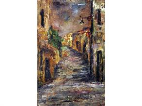 • Scuola del XX secolo Stradina olio su tavola cm 19x12