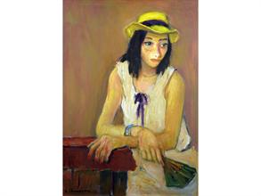 Chiancone Alberto (Porto S.Stefano - GR 1904 - Napoli 1988) Ragazza con cappellino giallo olio su tela cm 70x50 firmato in basso a sinistra:A.Chiancone