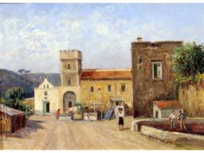 Canino Vincenzo (Napoli 1892-1978) S. Domenico al Vomero vecchio olio su tavola cm 25x35 firmato in basso a destra:V.Canino