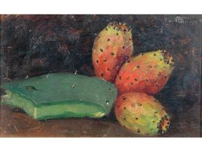 Vincenzo Canino (Napoli 1892 - 1978) Fichi d'india olio su tavola cm 16x26 firmato in alto a destra V. Canino
