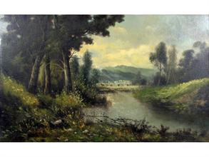 Capuano Francesco (Napoli 1854 - dopo il 1908) Paesaggio fluviale olio su tela cm 56x92 firmato in basso a destra: F.Capuano