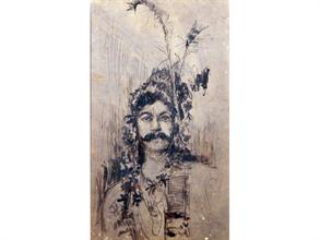 Michetti F. Paolo (Tocco di Casuria 1851 - Francavilla 1929) Ritratto maschile china su carta cm 47x25 firmato in basso a destra: Michetti